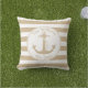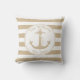 Dieses nautische Kissen hat einen hellen Anker mit einem runden Seilstreifen auf einem bräunlichen und weiß gestreiften Hintergrund. Personalisieren Sie mit Ihrem eigenen Familiennamen und Jahr der Niederlassung oder ersetzen Sie mit anderen Text.