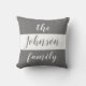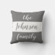 Ihre Familie wird dieses schicke und moderne personalisierte Kissen Liebe. Das Kopfkissen ist dunkelgrau und weiß gestrichen und mit der "Familie (Name)" in den gegensätzlichen Farben versehen.