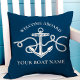 Dieses klassisch marineblaue, blaue und weiße Kissen ist perfekt für ein Boot, ein Strandhaus oder eine andere nautische Dekoration. In der Mitte befindet sich ein Anker mit Schiffseil und dem leicht anpassbaren Text oben und unten. *Wenn Sie Designhilfe oder passende Produkte benötigen, kontaktieren Sie mich bitte über Zazzle.