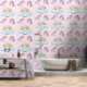 Name des Babys, Niedliche Einhörner und Regenbogen Tapete