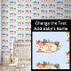 Fügen Sie den Babynamen hinzu, wechseln Sie zu IHRER Textsprache, tragen Sie den Baby Deer auf blauem Hintergrundpapier ein.