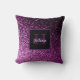 Mit Monogramm Kissen. Tief lila Imitate Glitzer-Verlauf. Für den Alltag glänzende Glanz und Luxus. Für Jugendliche und Frauen. Ein schwarzer und lila Rahmen mit Platz für Ihren Namen und Monogramm-Buchstaben. Der Name ist in Weiß geschrieben mit einem modernen handgeschriebenen Schriftsatz. Der Monogramm-Brief in lila.
