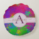 Name des Monogramms für die abstrakte farbige Gefä Rundes Kissen