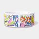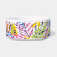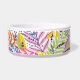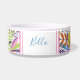 Farbenfrohe und elegante Blumenmuster mit Ihrem Hundenamen. Hübsches Hundegericht, um etwas Stil hinzuzufügen.