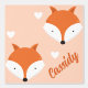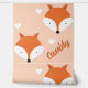 Kid's Name Fuchs Tier Tapete mit einem Muster von niedlichen Cartoon Fuchs Gesichter und Herzen auf einem hellorangen Hintergrund. Fügen Sie den Namen Ihres Kindes hinzu und greifen Sie heute dieses niedliche Hintergrundbild zu! Niedliche Fox-Kids bei Tieren Bezeichnung Hintergrundbild | ©Melissa Patton - Künstler/Illustrator