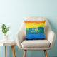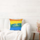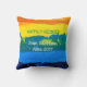 Das künstlerische und sonnige Pensionskissen mit "Kein Chef / Kein Problem" vorne und "Happily Remüde" hinten, noch personalisiert mit dem Namen des Rentners und dem Monat und Datum ihrer Pensionierung. Beachten Sie, dass Sie diese letztgenannten Informationen behalten oder löschen können, und auch die übrigen Nachrichten ändern können, zum Beispiel mit etwas wie "Goodbye tension / Hello pension". Das Kissen hat einen künstlerischen, farbenfrohen Hintergrund mit Bändern von lebhaften Farben: orange, gelb, grün, himmelblau und ozeanblau.