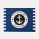 Angepasste Captain's Cabin und Boat Name mit Anchor, Roope und Stars Personalisiert Navy Blue, Black und White Doormat.