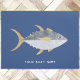Spaß Thunfisch mit einem frechen Lächeln, auf einem blauen Untergrund der Marine. Originelle Kunst von Nic Squirrell. Ändern Sie den Namen oder Text des Bootes, um ihn zu personalisieren.