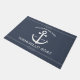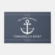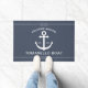 Fügen Sie Ihren Bootsnamen mit Anker, Seil, moderner Typografie und marineblau Begrüßungsmatte hinzu.