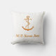 Ein klassischer weißer Hintergrund. Dekoriert mit Imitaten goldener Anker. Personalisieren Sie den Namen des Bootes und fügen Sie ihn hinzu.
