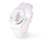 Auf dieser Uhr wird eine Aquarellbild von Miss Oaster Bunny mit einem weißen Silikon-Schnallen-Gurt gezeigt, der nie aus dem Styl verschwinden wird. Personalisieren Sie einfach mit der bereitgestellten Vorlage. Wählen Sie aus 15 Stilen, vier davon sind übergroß. Der Druck auf diese Uhren ist ausgezeichnet.