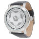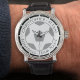 Ihr eigener Name und die Fußballmannschaft, die Sie bei einer Uhr unterstützen. Schwarz-Weiß-Thema.