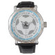 Ihr eigener Name und die Fußballmannschaft, die Sie bei einer Uhr unterstützen. Helles Himmelblau Thema.