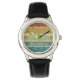 Name saurus grün T-rex Retro Hintergrund Dino-Kind Armbanduhr