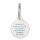 Für deinen besten Freund! Machen Sie es Ihrem (oder seinem), indem Sie den Namen Ihres Tieres auf der Vorderseite und Ihre eigenen Details oder Nachrichten auf der Rückseite hinzufügen. Einfaches Design in Blau und Weiß mit dem Namen und der Adresse Ihres Tieres, Ihrer Telefonnummer oder dem Text Ihres Hauses. Und ein passender Pfotendruck.