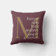Perfektes Urlaubsgeschenk für die Familie (z.B. Großeltern, Schwiegereltern). Burgundy Kissen mit Ihrem Text in cremefarbener Typografie. Fügen Sie einfach Ihre Namen und Gold Monogramm. Exklusiv für Sie entworfen von Happy Dolphin Studio.