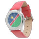 Kinderuhr aus Edelstahl mit rotem Lederarmband
