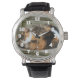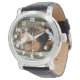 Uhr, Vintage Männeruhr mit schwarzem Lederarmband