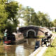 Ein Kunstdesign eines Schmalschiffes, das sich einer Schleuse nähert, und eines Mannes, der angeln will. Die im Vereinigten Königreich als Schmalboote bekannten Kanalboote wurden ursprünglich zur Beförderung von Gütern im ganzen Land eingesetzt. Sie werden heute hauptsächlich zur Freizeitgestaltung genutzt und ziehen Menschen aus aller Welt an, um unsere ländliche Umgebung zu genießen. Diese Boote sehen sehr hübsch mit ihren hellen Kabinen aus, die traditionell blau, rot oder grün sind. Blume und Schlossdesigns schmücken auch die traditionelleren Boote.