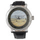 Uhr, Vintage Männeruhr mit schwarzem Lederarmband