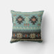 Indianerisch / Tribal Decke inspirierte Muster werfen Kissen zeigt geometrische Designs. Palette: braun, orange, himmelblau und cremeweiß.