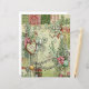 This design features a rich, rustic patchwork border in classic holiday colors—deep reds, forest greens, and creams—with patterns like damask, plaid, and vintage scenic prints. The center frame is a soft, textured green, creating the perfect space for a photo or custom text.