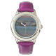 Uhr, Kinderuhr aus Edelstahluhr mit lila Lederarmband