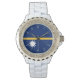 Eine wunderbare Damenuhr mit weißem Armband und grün-weiß-kariertem Ziffernblatt. Trägt sich ganz fabelhaft. Exzellenter Druck, sehr klare Farben. Schönes Design.