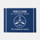Herzlich willkommen in unserem Beach House personalisiert mit Ihrem eigenen Familiennamen Haustür. Mit einem eigens dafür entworfenen nautischen Bootanker mit gekreuzten Rudern und Seilboardern auf wunderschönem Marineblau. Ändern Sie einfach die Hintergrundfarbe, um die aktuelle Dekoration zu erhalten. Macht ein großartiges Geschenk.