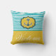 Nautic Aqua Blue Yellow Stripes Anker Custom Kissen