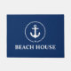 Nautical Beach House Anchor Rope Door Mat Navy Blue