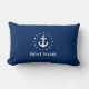 Nautic Boat Name Anchor Stars Navy Blue Lumbar Pillow
