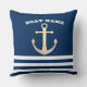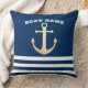 Nautic, Gold Anchor Navy Blue Striping Kissen