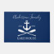 Stilvolle Skripte Nautical Lake House Anchor Oars Familienname Navy Blue Door Mat