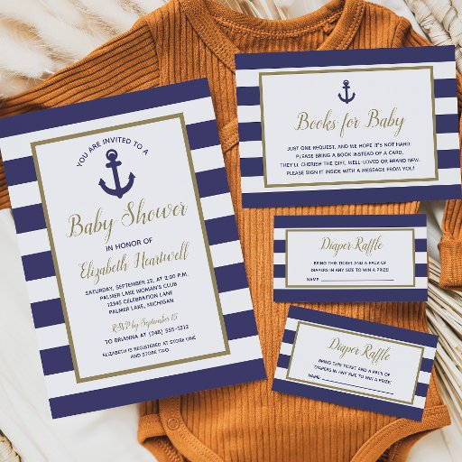 Nautical Anchor Navy Blue Stripes Boy Baby Dusche Einladung