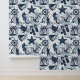 Ein unterhaltsames Strandmuster aus nautischen Elementen wie Anker, Seagull, Seestern und vieles mehr, alles in marineblau mit Wirbel und Wellenaqua blauen Akzenten. Erschaffen Sie ein Strandhaus oder ein Badezimmer mit diesem originellen Muster. Suchen Sie ID839, um weitere Produkte mit diesem Design zu sehen.