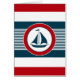 Schönes Design mit runder Dekoration der Segelboote auf blau, rot und weiß gestreiftem Hintergrund