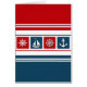 Schönes Design mit Segelboot, Anker, Kompass und Dekoration von Segelrädern auf gestreiftem Hintergrund