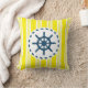 Schönes Design mit Dekoration der Segelräder auf gelb-weiß gestreiftem Hintergrund