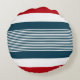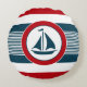 Schönes Design mit runder Dekoration der Segelboote auf blau, rot und weiß gestreiftem Hintergrund