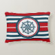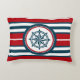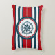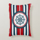 Nautisches Design mit Kompassdekoration in runder Form auf rot, blau und weiß gestreiftem Hintergrund