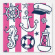 Nautical Doodles – Hot Pink & Navy Coastal Stripe Tapete