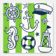 Nautical Doodles – Lime & Navy Coastal Stripe Tapete