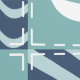 Ein inspiriertes Muster von stürmisch-türkisfarbenen Plätzen, die mit einem weißen Segelboot und Anker dekoriert sind, und die tiefmarineblauen Plätze, die mit blassblauen Chevrons und Wellen geschmückt sind, werden durch die weißen Stiche unterstrichen, um ein klassisches nautisches Ambiente zu schaffen.