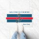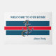 Diese Begrüßungsmatte hat eine Touch aus Rot, Weiß und Blau mit einem Hauch von Wassersport. Set auf weißem Hintergrund, das Design beginnt mit blauen und roten Balken. In der Mitte befindet sich ein Anker mit Seil. Der Text lautet: "WILLKOMMEN AUF UNSERE ZUHAUSE - Johnson Family". Text kann angepasst werden.