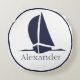 Nautical White Sailboat Navy Blue Coasty Monogram Rundes Kissen