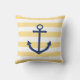 Nautikgelb gestreiftes Kissen mit Ankernadel