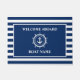 Nautical Welcome An Bord Anker Rope Star Helm Navy Blau und Weiße Streifen Ihr Boot Name Matte