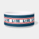 Liebe nautisches Design mit Kompassdekoration auf blau, rot und weiß gestreiftem Hintergrund