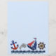Grafische Darstellung des nautischen Musters von Segelbooten, Schiffsrad, Anker und Wal auf dem Wasser.